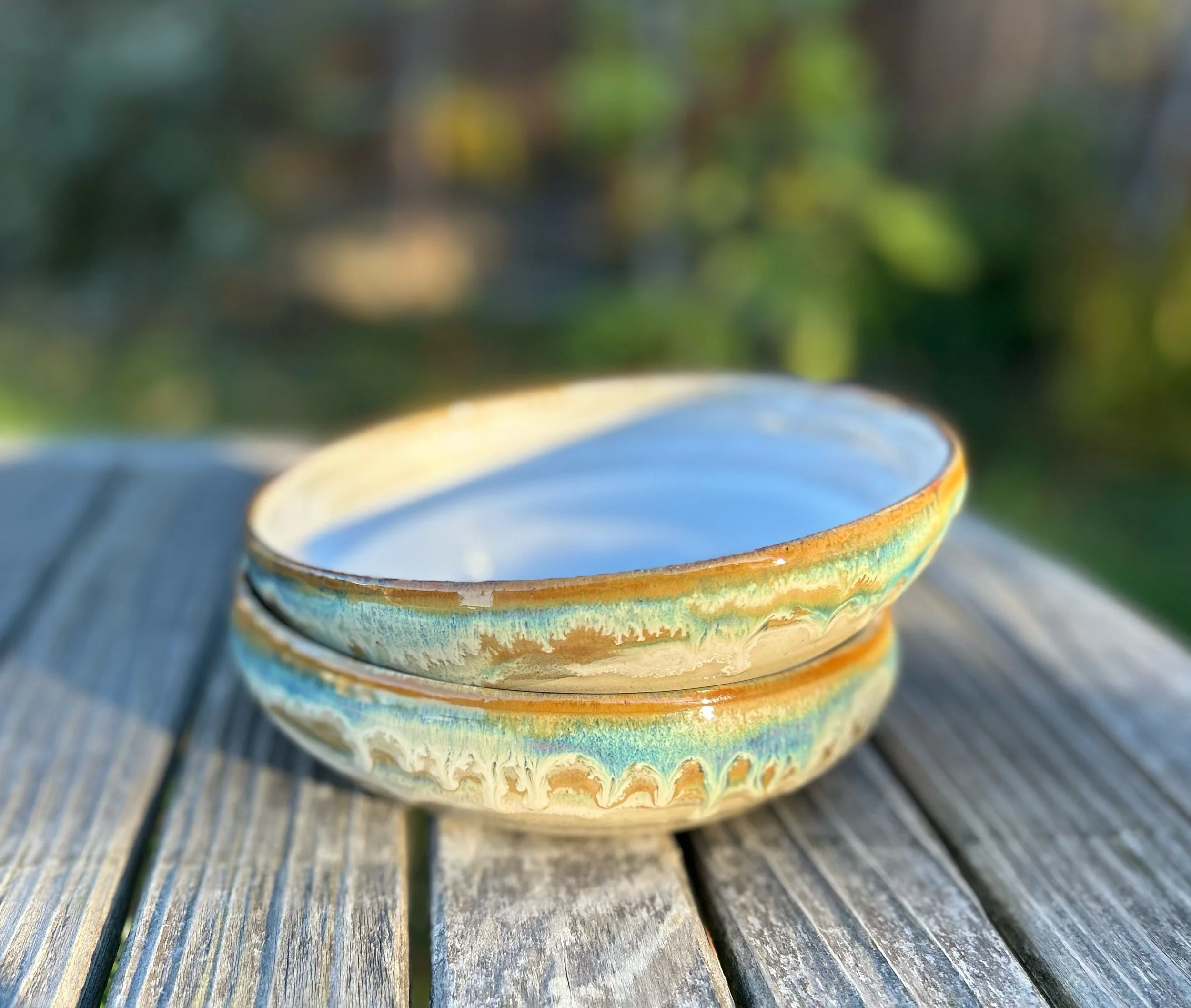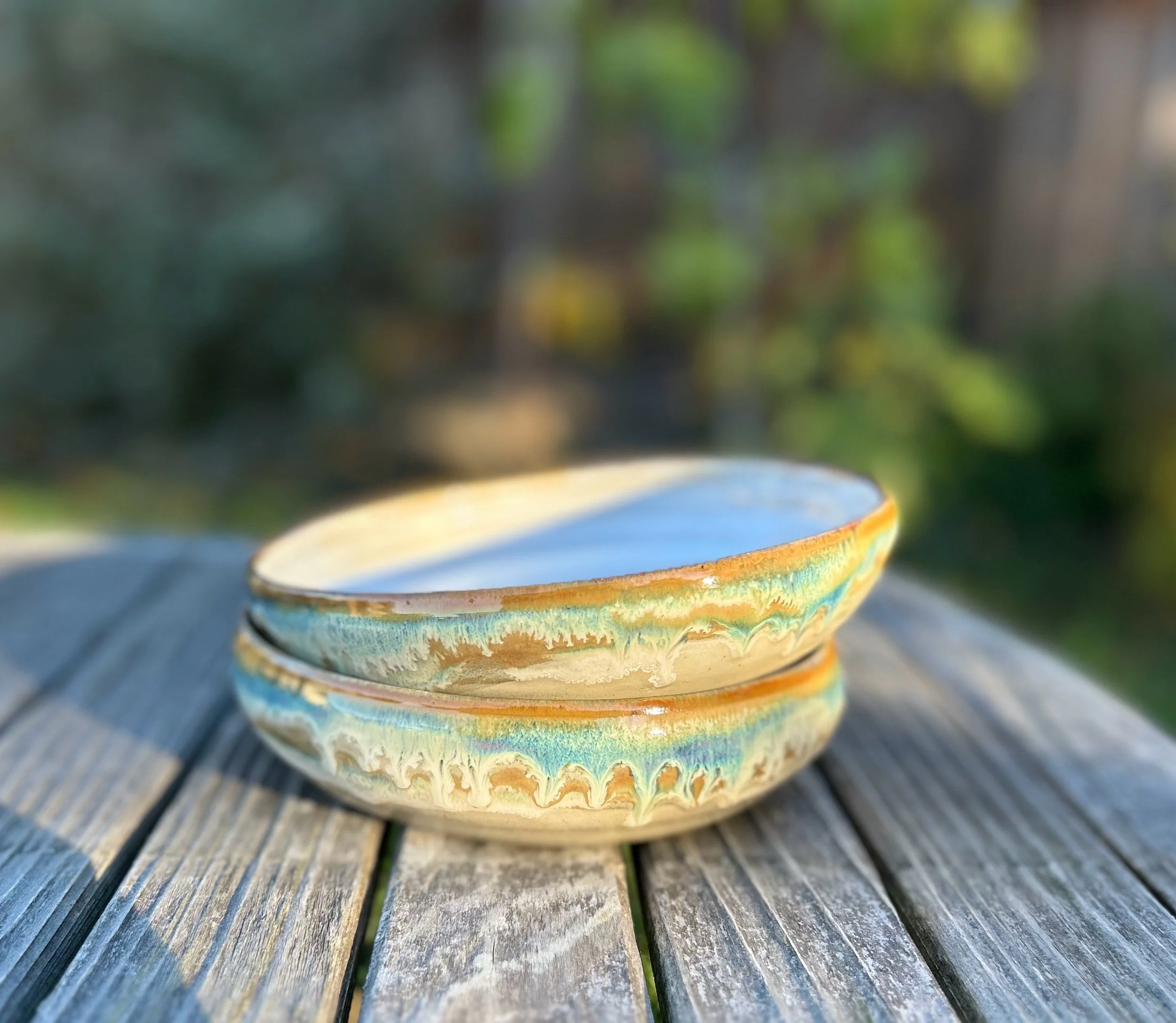 Set of 2 hand thrown and glazed ceramic stoneware pasta bowls. Set of 2. Dishwasher safe.