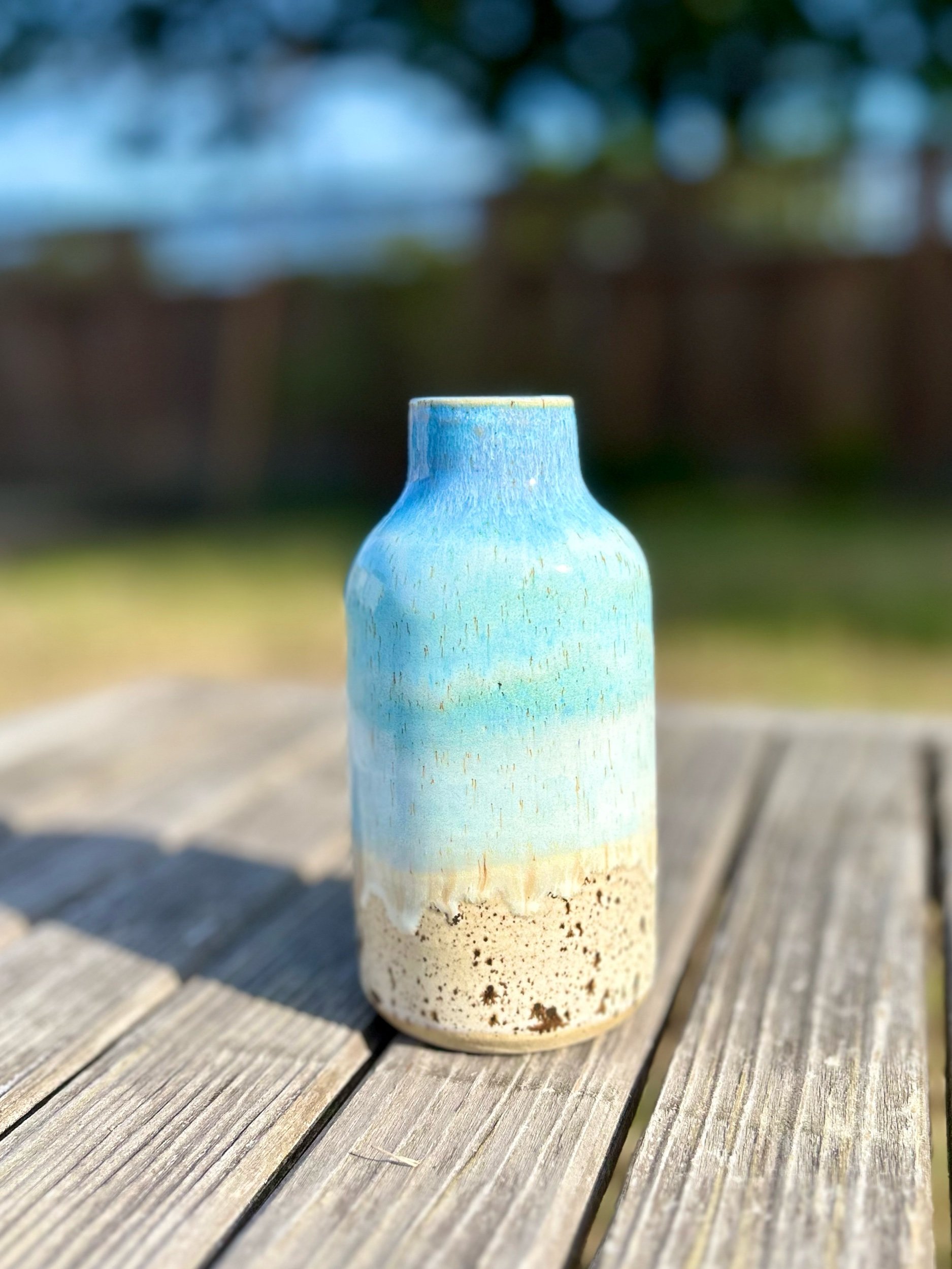 Image 1 of 2 Image 2 of 2 Beach Vase 2 $55.00 sold out Add a touch of the beach to your living space with this beautiful shoreline vase.Measures 6” tall. Sold Out Added! Add a touch of the beach to your living space with this beautiful shoreline vase.Measures 6” tall.