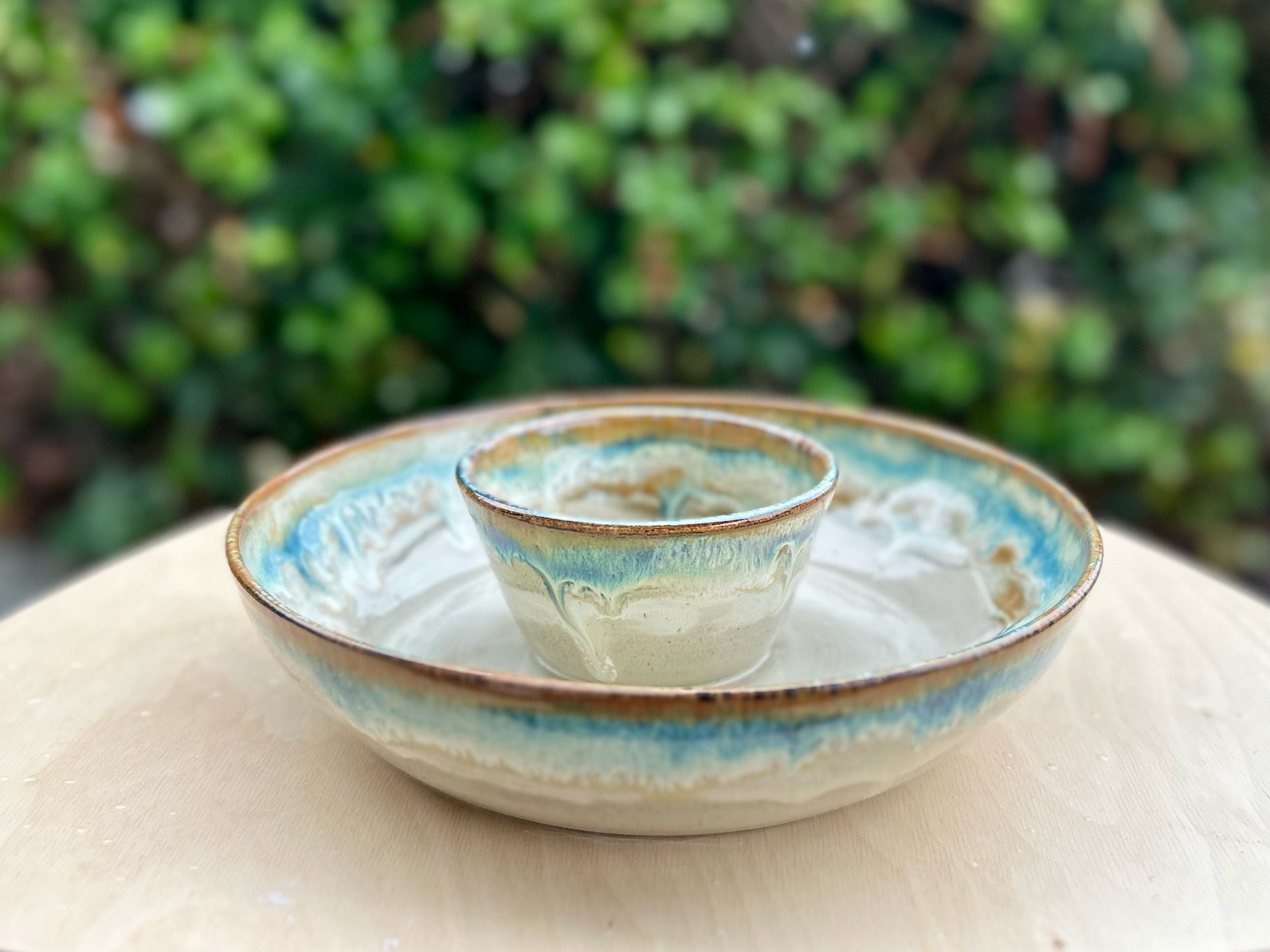 Chip and dip or veggie platter perfect for fall! On the smaller side, measures 7 1/4” wide. Perfect for one or two people on a cozy night at home.