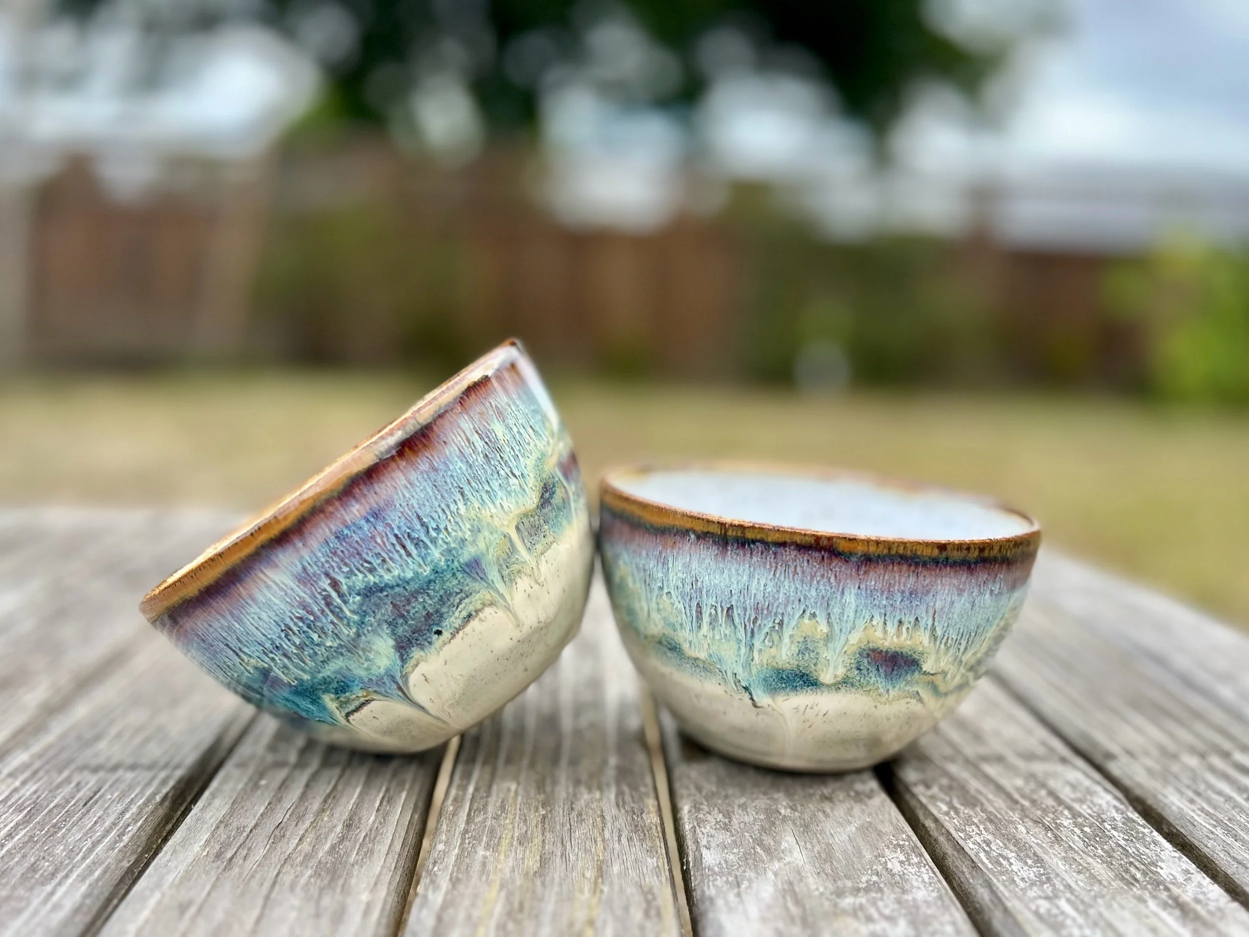 Handmade ceramic stoneware bowls, in a beautiful autumn glaze. This set of 2 bowls would look lovely on any table.